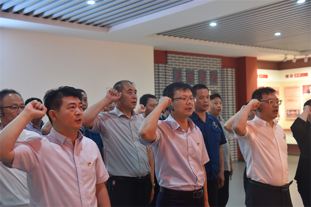 參觀最后,全體黨員在公司黨委書記、董事長盛守祥的帶領(lǐng)下,舉起右拳面對(duì)黨旗,重溫了入黨誓詞。
